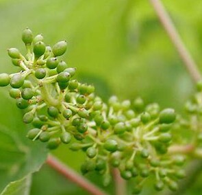 Tiny bunches of grapes emerge. Rain around this time of the year can inhibit flowering and limit the crop.
