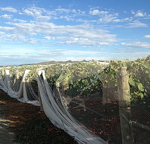 This is the time of the year where we work hard to contain the canopy (leaves) and allow enough sunshine to help with ripening and air to help avoid botrytis taking hold. Veraison (grapes changing colour) happens in late January and means we put the nets on our red grapes to avoid the birds taking far too much of their share.