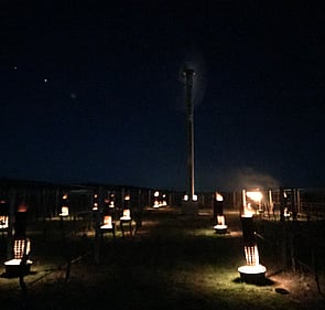 Pruning continues, but we are now frost fighting to protect the tender shoots that are emerging. Frost damage can wipe out an entire crop so we use helicopters, wind machines and frost pots to keep everything warm.