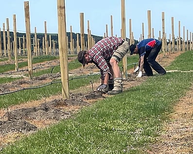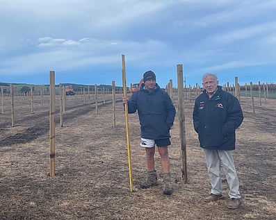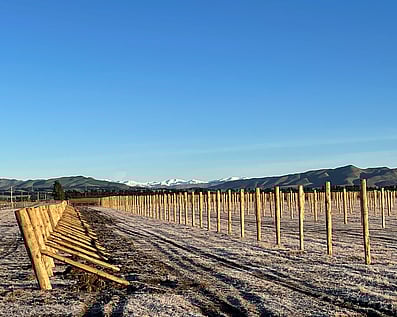 May - Marking outMike and Tony planted our Limeloader vineyard originally. Mike is Tony's son and a builder, so the rows and posts are VERY straight and tidy. Perfect Pinot Gris is starting here....
